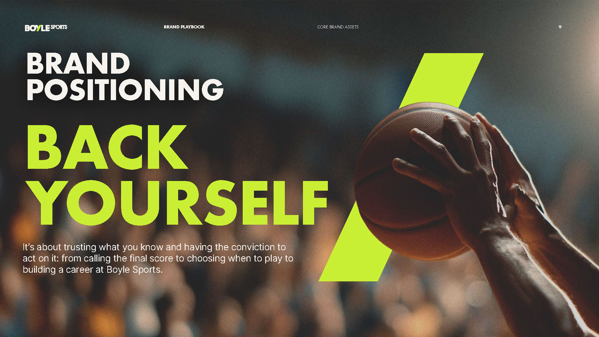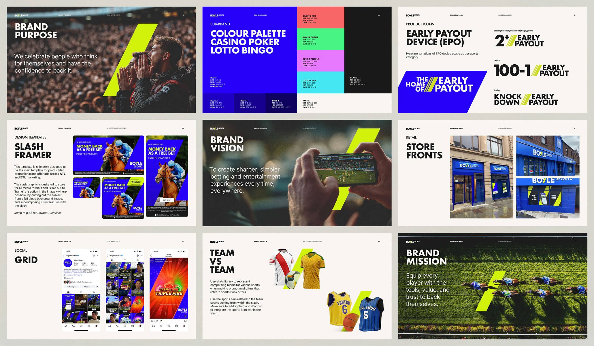 The ask was to completely rebrand Ireland's largest independent bookmaker, Boyle Sports, into its new era with the aim of becoming a major force in the UK betting industry. The first task was to redesign their logo that will be placed as West Ham UFC’s front-of-shirt sponsor for the 2025/26 Premier League season. With that in mind, we conceptualised a new brand world from logo and signifier – A new design language and system that is built from an ownable brand signifier in the category – The Slash Odds. A graphic icon that reflects the concept of confident decisions – trusting what you know and having the conviction to act on it: from calling the final score to choosing when to play to building a career at Boyle Sports. From this, a brave and new future facing logo, an updated digital-first modern brand palette, with the slash icon at the heart of it – building clarity, trust and brand consistency.