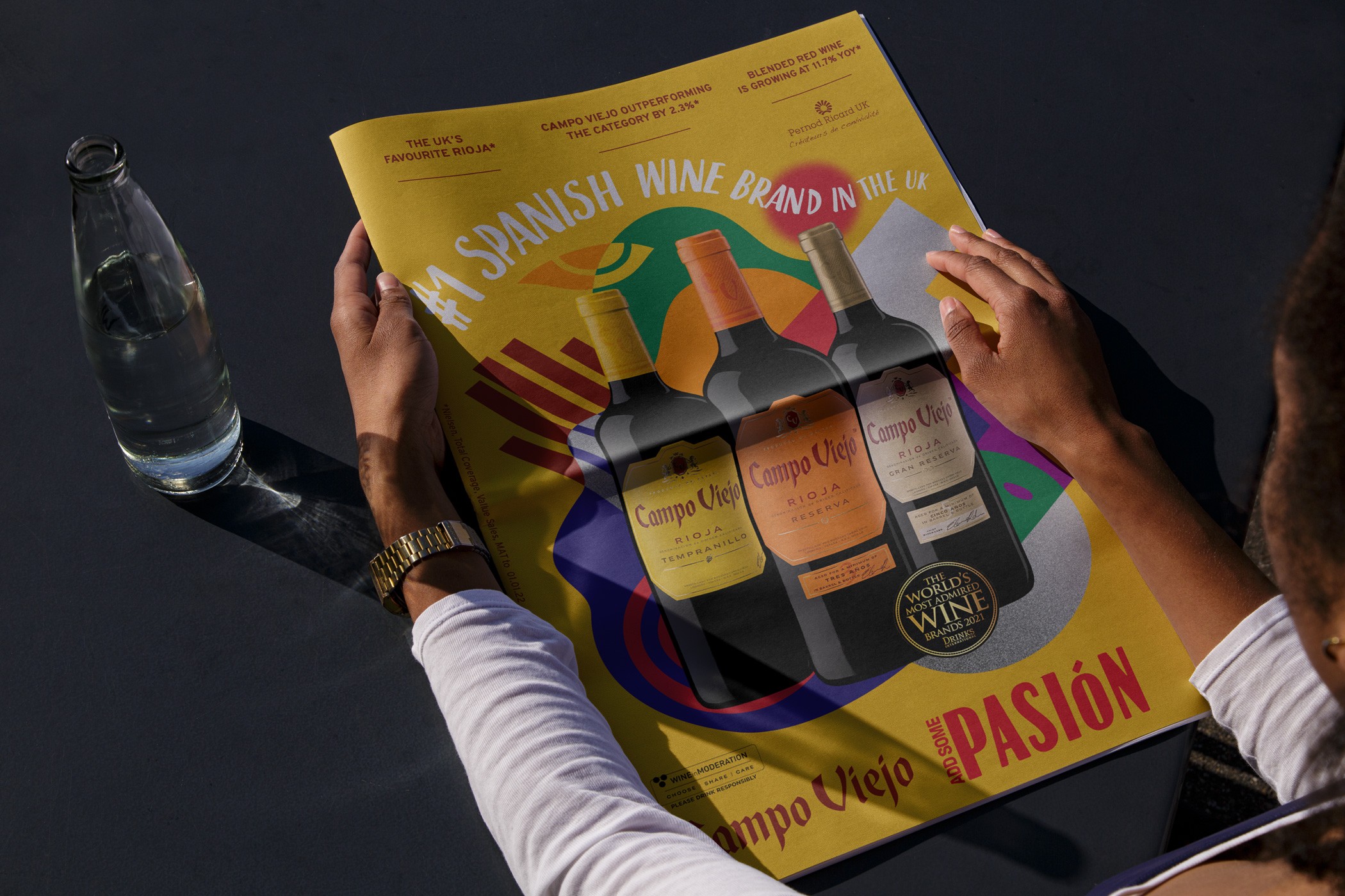 Despite being the world’s #1 Rioja, and being widely recognised for its Spanish heritage and iconic yellow label, research revealed there was little deeper emotional connection between the brand’s provenance and its audience. Working with Pernod Ricard, we set out to unlock the true value of Spanishness for a global audience, with a particular focus on the UK. Through research and close collaboration with the client, we identified Pasión as the cultural truth at the heart of both Spain and the brand—becoming the foundation for a new global platform. The design approach translated this idea into a vibrant Pasión-centric visual world, built from colourful geometric forms representing the essential ingredients behind the wine: the Spanish sun, the Rioja landscape and its mountain ranges, flowing water, the architecture of the Campo Viejo winery, and the creativity of the winemakers themselves. These elements came together as a bold, expressive composition—transforming the craft of winemaking as the brands passionate driver. 🍷🎨 The result was a distinctive and flexible visual identity that celebrated the energy, colour and creativity of Spain, creating a stronger emotional connection between Campo Viejo and consumers while helping futureproof the brand in an increasingly competitive category.