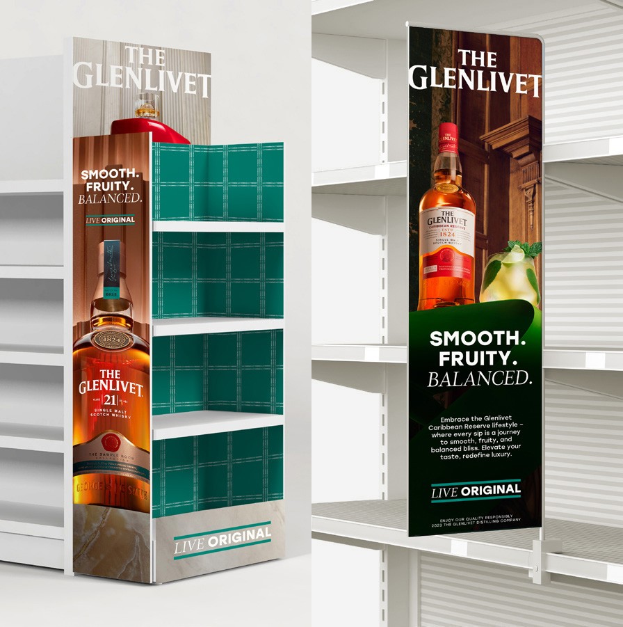 In 2019, we relaunched The Glenlivet with a bold global campaign designed to challenge the conventions of whisky advertising and open the single malt category to a new generation of drinkers (see 2019 portfolio project). By 2024, the brand needed to evolve again—refining its positioning and visual identity to reconnect emotionally with consumers and respond to the shifting expectations of modern luxury. Working with Pernod Ricard, we developed a new global positioning, tagline, creative platform and visual identity designed to transform the fortunes of both the brand and the category. The visual identity was designed to balance craft heritage with contemporary expression. Key principles included: A more confident and distinctive brand presence; A bold teal frame device and smooth graphic expression to stand apart in the category; Premium cues that reinforced The Glenlivet’s quality and provenance; A flexible system capable of scaling across global markets, Retail & L3F and digital platforms. The system created a cohesive brand world while allowing the creative platform to evolve over time. The refreshed platform helped drive significant growth for the brand while outperforming the category: +14.7% brand growth vs 4% category growth; Re-established as the #1 single malt whisky in the US; Reversed decades of category decline. The work repositioned The Glenlivet not only as a category leader, but as a brand capable of shaping the future of single malt whisky.