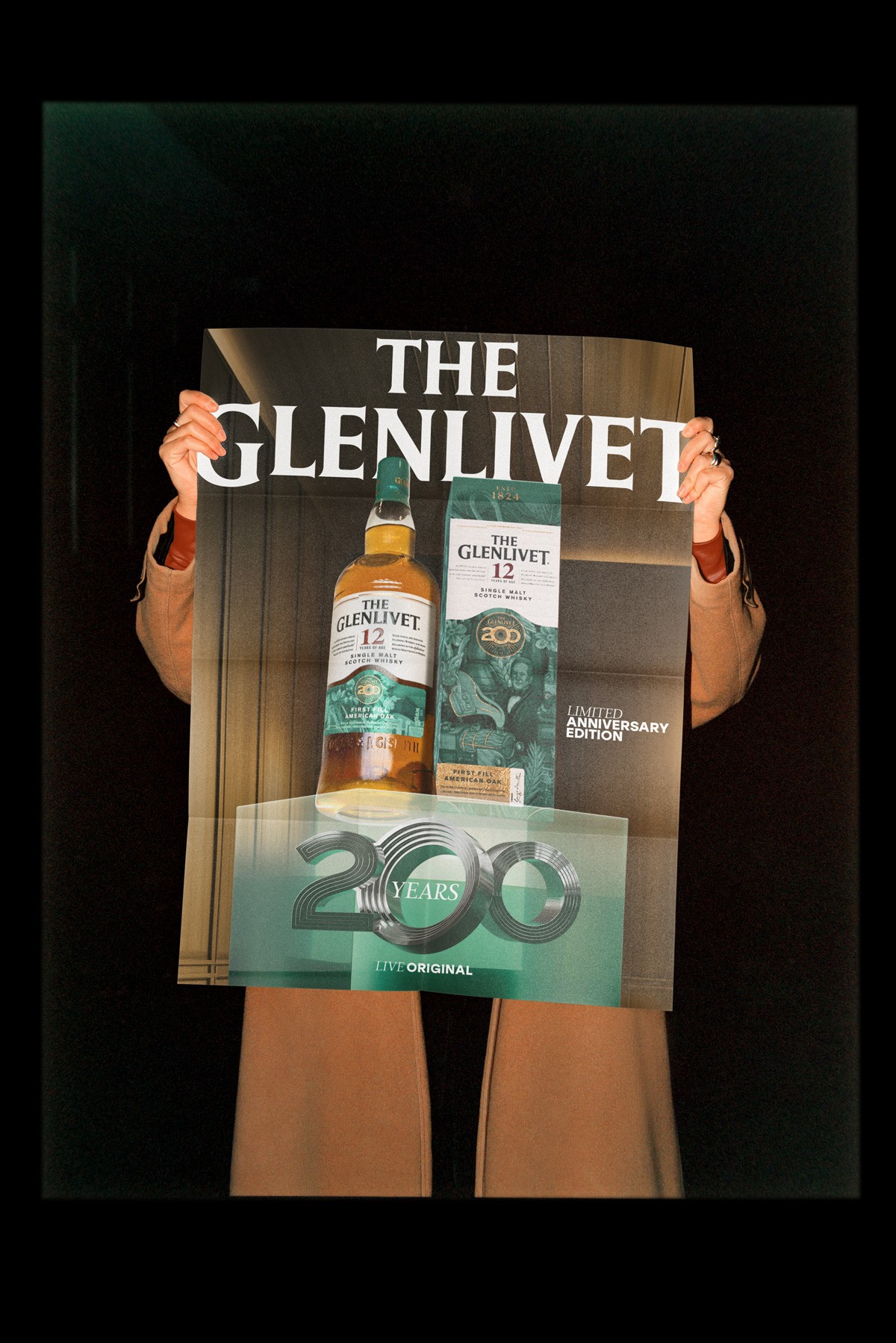 In time for The Glenlivet's brand refresh in 2024 was the brand's 200 year anniversary celebration. The brand wanted an emblem that encompasses 200 years of whisky craftsmanship in 2024 by committing to "forever moving forwards," a theme highlighting its evolution from 1824 through to modern innovation. We've conceptualised and designed a 200 icon that lived on limited edition bottles and was further developed and visualized in 3D for all applicable digital and print communications and events.